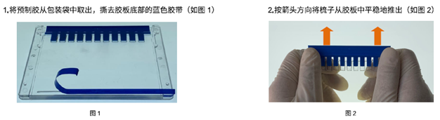 本產品用于Bio-Rad Mini 電泳槽時的操作方法:將電泳槽的綠色密封條取出,將其平坦的一面朝外,再插回原處。