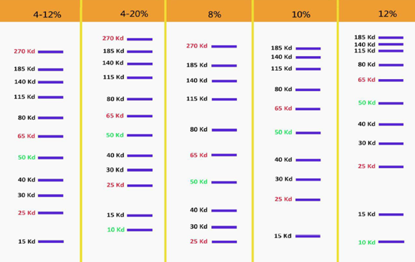 預制膠為PH中性緩沖液制備,可長期存放(4°C一至二年)本品既可進行天然蛋白電泳,也可進行變性蛋白電泳。電泳及轉膜緩沖液兼容傳統(tǒng)tris-glycine緩沖液,50分鐘完成電泳,使用方便,即開即用,蛋白條帶條帶清晰,并可實現(xiàn)接近100%轉膜。兼容BIORAD,天能及北京六一的mini膠電泳槽及其他任何膠板寬度在10cm的電泳槽。