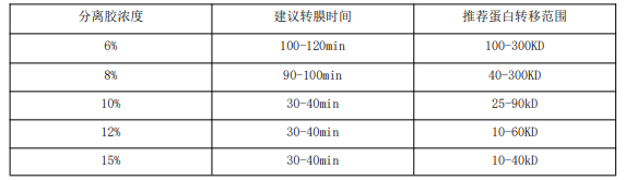 注:不推薦使用恒壓轉(zhuǎn)移,因轉(zhuǎn)膜液中離子成分較多,當(dāng)電壓在100v左右時,電流會達(dá)到400mA,此時已達(dá)到普通電泳儀器zui大電流,隨著時間延長,可能無法達(dá)到穩(wěn)定的100v電壓。