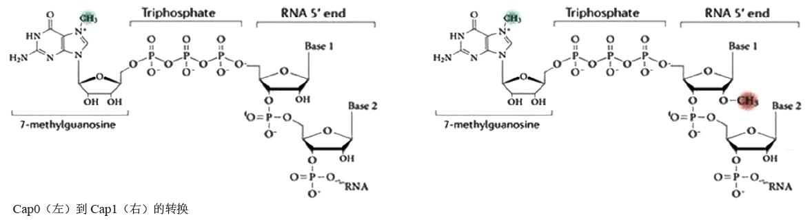 Cap 0-和 Cap 1-mRNA:Cap 0-和 Cap 1-mRNA 之間的差異在 RNA 5'端緊鄰帽結(jié)構(gòu)的第一位核苷酸(N1)是否具有 2'-O-甲基。在高等真核細(xì)胞中,該甲基化是天然加帽過(guò)程的一部分,Cap 1 結(jié)構(gòu)提高了 mRNA 的翻譯效率。