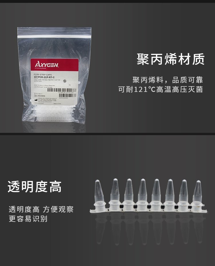 Axygen? 1 x 8 strip flat PCR ultra-clear thin wall caps are designed to fit 8 strip PCR tubes and 96 well PCR microplates. Specifically designed for Real Time PCR.