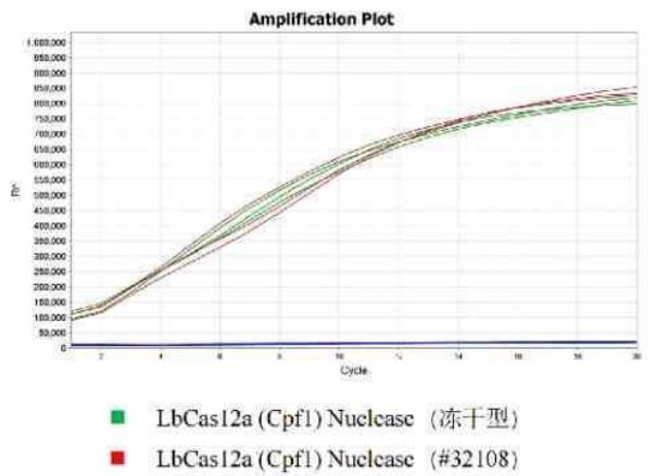 本產(chǎn)品將無(wú)甘油LbCas12a核酸酶凍干,可用于常溫運(yùn)輸及保存,使用配套的凍干Cas酶復(fù)溶液復(fù)溶后,具有與本公司非凍干型LbCas12a (Cpf1) Nuclease(#32108)同等的反應(yīng)活性。本產(chǎn)品包括可用于單個(gè)反應(yīng)的酶凍干粉及凍干球等多種凍干形態(tài),滿足不同下游反應(yīng)體系構(gòu)建的需求。