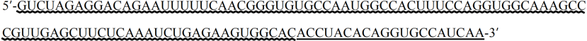 波浪線部分為AapCas12b sgRNA scaffold 序列,下劃線部分為 Target Sequence 反向互補(bǔ)序列。