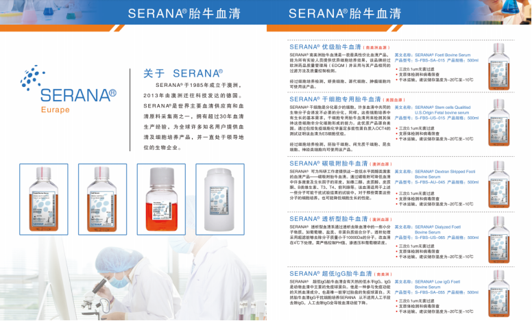 Serana公司的胎牛血清,目前在國內(nèi)很多高校、科研院所、研發(fā)公司的細(xì)胞培養(yǎng)過程中獲得了非常廣泛的使用,產(chǎn)品質(zhì)量也贏得了大家的良好口碑。