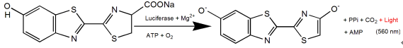 D-熒光素(D-Luciferin)是熒光素酶(Luciferase)的常用底物,普遍應(yīng)用于整個生物技術(shù)領(lǐng)域,尤其是體內(nèi)活體成像技術(shù)。其作用機(jī)制是在ATP和熒光素酶的作用下,熒光素(底物)能夠被氧化發(fā)光。當(dāng)熒光素過量時,產(chǎn)生的光量子數(shù)與熒光素酶的濃度呈正相關(guān)性(見下圖)。