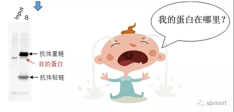 在做CoIP實驗過程中往往會遇到目的蛋白與抗體輕鏈(25kDa左右)或者抗體重鏈(55kDa左右)的分子量接近的情況,導致IP-WB檢測時無法判斷目的蛋白條帶(如上圖)。