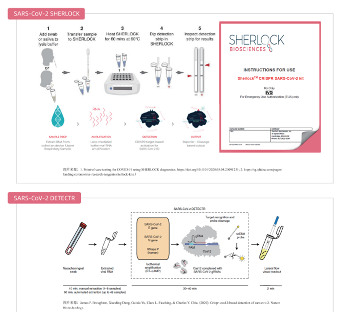 通過將Cas9的特異性切割特征和核酸擴增體系結(jié)合,可實現(xiàn)針對靶標核酸的檢測,從而可實現(xiàn)SNP(single nucleotide polymorphism)的區(qū)分和病原體表型的分型。目前,有至少3種結(jié)合PCR擴增的檢測方法被成功開發(fā),分別為ctPCR(CRISPR-typing PCR)、CARP(Cas9/sgRNAs-associated reverse PCR)和基于CRISPR/Cas9切割活性的PCR。上述方法都是在PCR擴增之前利用Cas9切割完全匹配的靶標序列,而不切割產(chǎn)生突變的靶標序列,從而影響PCR的擴增結(jié)果,進而區(qū)分諸如高危人乳頭瘤病毒(HPV)亞型HPV16和HPV18或是用來檢測低頻突變。