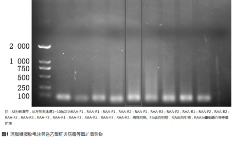 1.試劑與儀器:HBV DNA陽性質(zhì)粒(博邁德生物科技有限公司);HBV國際標(biāo)準(zhǔn)品(英國國家生物標(biāo)準(zhǔn)與控制研究所);瓊脂糖(索萊寶科技有限公司);Tris-乙酸-乙二胺四乙酸溶液和GoldenViewTM(博邁德生物科技有限公司);TIANamp病毒DNA/RNA提取試劑盒(天根生物技術(shù)有限公司);RAA核酸擴增試劑盒和逆轉(zhuǎn)錄-重組酶介導(dǎo)的等溫擴增試劑盒(眾測生物科技有限公司);乙型肝炎病毒核酸定量檢測試劑盒(圣湘生物);凝膠成像儀和 PCR擴增儀(美國Bio-Rad公司);Roche Light Cycler 480 Ⅱ?qū)崟r熒光定量PCR儀器(瑞士羅氏公司)。