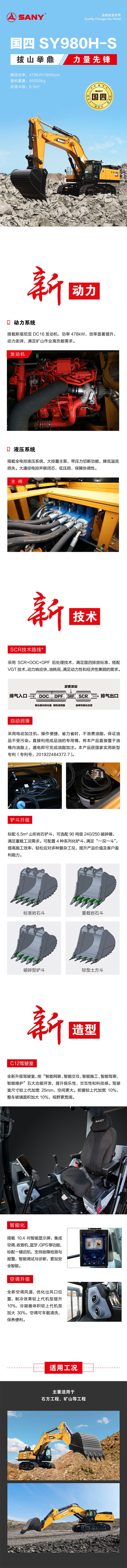 | 性能 | 行走速度:4.3/3.0km/h 爬坡能力:35° 回轉速度:7rpm 接地比壓:132kPa 鏟斗挖掘力:495kN 斗桿挖掘力:405kN |