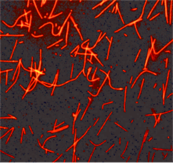 Rhodamine labeled microtubules formed from rhodamine labeled tubulin.