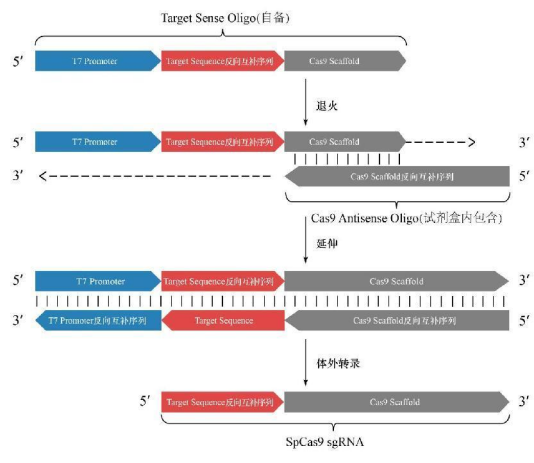 Cas9 Antisense Oligo 與 Target Sense Oligo 退火延伸反應完成后便可作為轉錄模板使用。