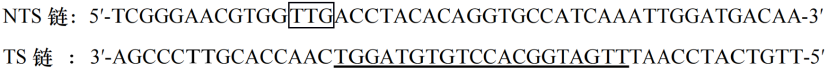 其中波浪線部分為 Cas12b sgRNA scaffold 的部分反向互補(bǔ)序列,為固定序列。下劃線部分為 Target Sequence。