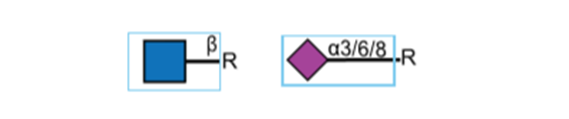 WGA的受體糖是N-acetylglucosamine,多與二聚體和三聚體結(jié)合。WGA可與含末端N-acetylglucosamine 或 chitobiose結(jié)合,這些結(jié)構(gòu)是許多血清和膜糖蛋白的共同結(jié)構(gòu)。細(xì)菌細(xì)胞壁內(nèi)的肽聚糖、幾丁質(zhì)、軟骨粘多糖及糖脂均可跟WGA結(jié)合?;钚?/span>WGA通過唾液酸殘基與部分糖蛋白相互作用。