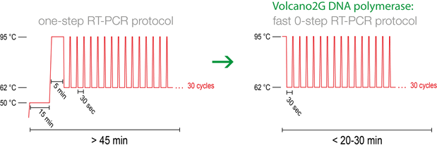 Volcano2G是一種具有PCR活性的逆轉(zhuǎn)錄酶,非常穩(wěn)定,在95°C下的半衰期> 40分鐘。