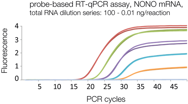 RT-PCR活性:已對(duì) Volcano3G RT-PCR Mix進(jìn)行了成功的RT-PCR性能測(cè)試。在實(shí)時(shí)PCR循環(huán)儀中從人總RNA提取物中擴(kuò)增出151 bp片段(HPRT1 mRNA),并可視化為單個(gè)擴(kuò)增產(chǎn)物。