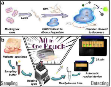 近日,一項(xiàng)發(fā)表于《Sensors and Actuators B: Chemical》的研究介紹了一款特殊的猴痘病毒檢測(cè)裝置,該裝置包含了以RPA和CRISPR-Cas12a技術(shù)作為原理的凍干型檢測(cè)試劑,可在35分鐘內(nèi)完成對(duì)猴痘病毒的快速自測(cè)。
